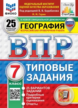 Данное пособие полностью соответствует федеральному государственному образовательному стандарту. Книга содержит 25 вариантов типовых заданий Всероссийской проверочной работы (ВПР) по географии для учащихся 7-х классов. Сборник предназначен учащимся 7-х классов, учителям и методистам, использующим типовые задания для подготовки к Всероссийской проверочной работе по географии.