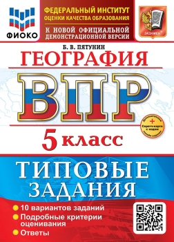 Данное пособие полностью соответствует федеральному государственному образовательному стандарту. Книга содержит 10 вариантов типовых заданий Всероссийской проверочной работы (ВПР) по географии для учащихся 5-х классов. Сборник предназначен учащимся 5-х классов, учителям и методистам, использующим типовые задания для подготовки к Всероссийской проверочной работе по географии.