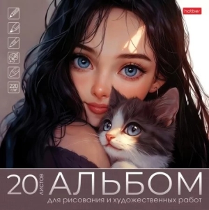 Альбом для рисования 20л 220х220 мм Cat and girl 220 гр жесткая подложка