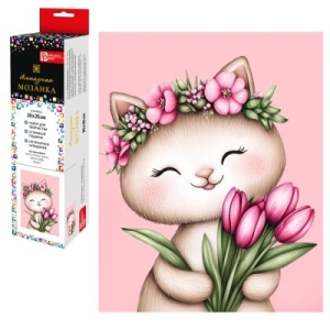 Мозаика алмазная 20x25 см Кошечка с тюльпанами