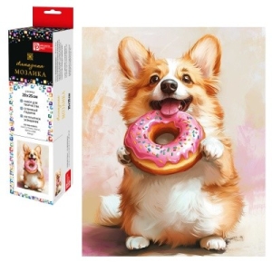 Мозаика алмазная 20x25 см Корги с пончиком