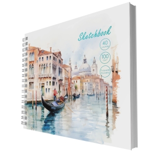Скетчбук А6+ 40л евроспираль 100 г/м белая Венеция