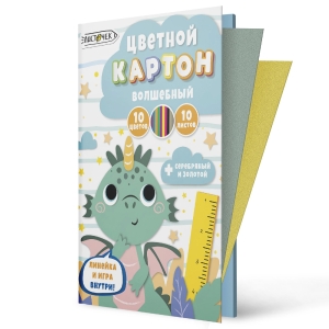 Набор цв картона 10л 10 цв мелованный волшебный Дракоша