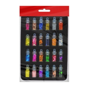Блестки для декора набор 24 вида по 2 гр в стеклянных тубах