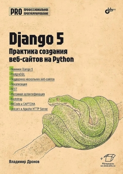 Книга посвящена разработке веб-сайтов на языке Python с применением веб-фреймворка Django 5.1. Представлены новинки Django и дано наиболее полное описание его инструментов и средств: моделей, миграций, контролеров, шаблонов, обработки пользовательского ввода, разграничения доступа, посредников, сигналов, отправки электронной почты, локализации, кеширования, работы с базами данных PostgreSQL, поддержке нескольких веб-сайтов, простых страниц, статичных перенаправлений, жетонной аутентификации и др. Описаны полезные дополнительные библиотеки, реализующие обработку BBCode, CAPTCHA, вывод графических миниатюр, интеграцию с Bootstrap. Рассказано о программировании веб-служб REST, настройке встроенного административного веб-сайта и публикации готового сайта посредством веб-серверов Uvicorn и Apache HTTP Server. Подробно описано создание полнофункционального веб-сайта — электронной доски объявлений.