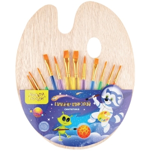 Кисти набор 12шт синтетика №: 3 круглые, № 6 круглые, № 8 плоские, № 10 круглые, № 12 плоские с палитрой
