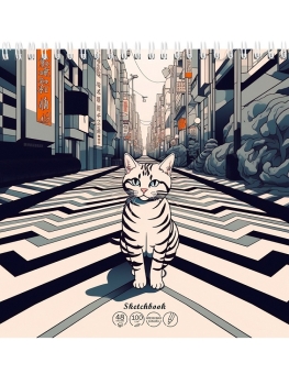 Скетчбук 190х190 мм 48л Кот на дороге гребень 100 гм2