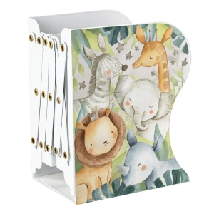 Подставка для книг раздвижная 3 отд Зверята металл белая