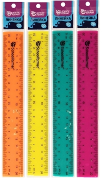 Линейка 20 см пластик непрозрач ассорти неон