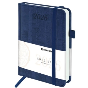 Ежедневник 2026 г А6 100х150 мм Wood под кожу синий