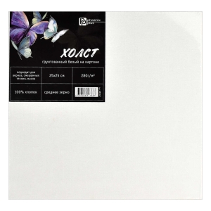 Холст на картоне 25*25 см белый хлопок 100% 280 г/м2 зерно среднее Бабочки