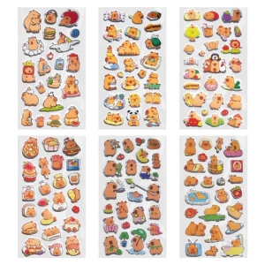 Наклейки зефирные Капибары 18х9,5 см ассорти 6 видов