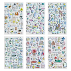 Наклейки гелевые Блестящий микс 15,5х9,5 см ассорти 6 видов
