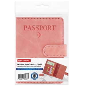 Обложка для паспорта и документов с защитой от считывания 9 карманов экокожа розовая