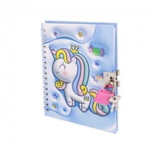 Блокнот подарочный 13,0 см * 18,0 см 45л клетка Единорожки гребень замочек голубой