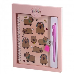 Блокнот подарочный в футляре 19,5 см * 22 см клетка Капибара-музыкант гребень ручка замочек персиковый