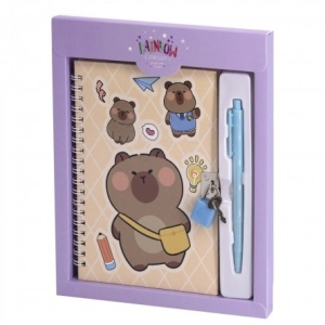 Блокнот подарочный в футляре 19,5 см * 22 см клетка Капибара-ученик гребень ручка замочек сиреневый