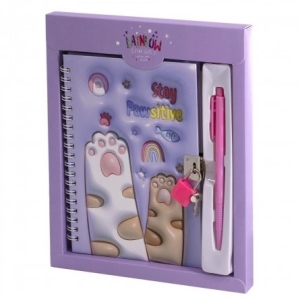 Блокнот подарочный в футляре 19,5 см * 22,5 см клетка Лапки гребень замочек сиреневый