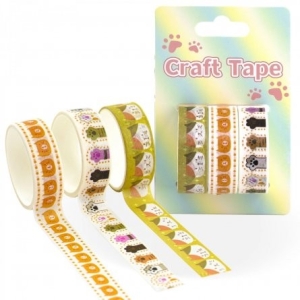 Лента клейкая декоративная 1,5 см х 2м 3шт Лапки котика асcорти