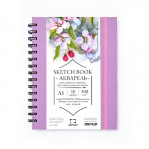 Скетчбук для акварели 15х20 см 20л WaterFall спираль 300 г/м сиреневый