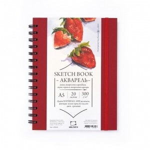 Скетчбук для акварели 15х20 см 20л WaterFall спираль 300 г/м красный
