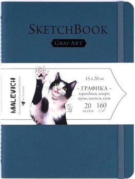 Скетчбук для графики 15x20 см 20л GrafArt white 160 г/м синий