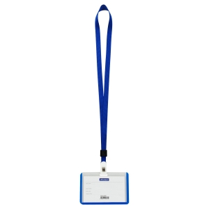 Бейдж горизонтальный 67*100 мм размер вставки 55*90 мм с клипом на синей ленте