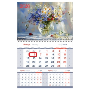 Календарь 2026 г квартальный 1 блок 1 гребень магнит бегунок 295*475 мм Mono premium Полевой букет