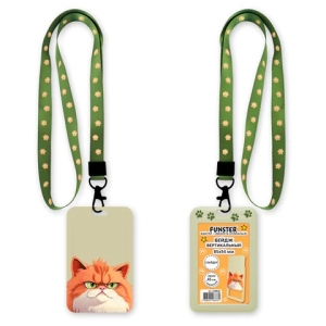 Бейдж вертикальный Котик 85х54 мм лента 45 см