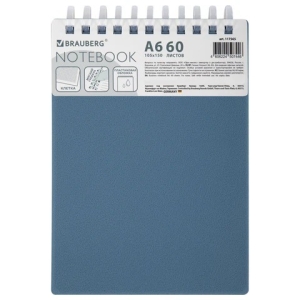 Блокнот А6 60л клетка силиконовый гребень обложка пластик синий