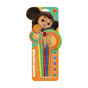 Набор кистей 5шт Чебурашка синтетика, круглая № 3, плоские № 2, 6, 14, овальная № 1