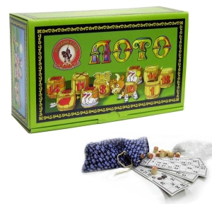 Старинная азартная игра с деревянными бочонками. Благодаря простым правилам игра завоевала большую популярность и встала в один ряд с такими развлечениями для большой компании, как домино и карты. Игра для детей от 6 лет. Состав игры: • Игровые карточки – 24 шт. • Бочата с числами – 90 шт. • Маркеры – 90 шт. • Мешок – 1 шт. • Правила игры