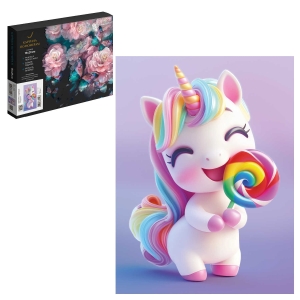 Картина по номерам 15х20 см Единорог с леденцом на подрамнике
