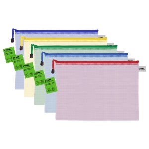 Папка на zip-молнии А4 ПВХ 250мкм прозрачная сетка цветная молния