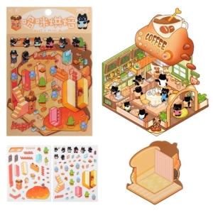 Наклейки румбокс 12,5*15 см 3л Кафе у котика ассорти