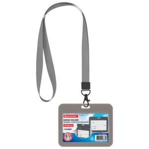 Бейдж горизонтальный 54х85 мм лента 45 см с карабином серый