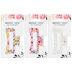 Краб для волос 8,5 см прозрачный с рисунком ассорти
