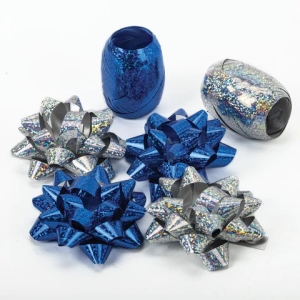 Набор для декора и подарков 4 банта, 2 ленты, голография цвета синий, серебристый