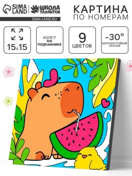Картина по номерам 15х15 см Капибара с арбузом