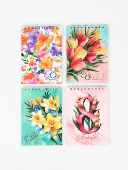 Блокнот А6 40л на гребне С 8 марта ассорти