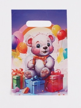 Пакет Мишутка в подарках полиэтиленовый с вырубной ручкой 20х30 см 30мкм