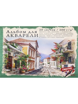 Альбом для акварели А4 20л Цветная улица жесткая подлож 200 г/м