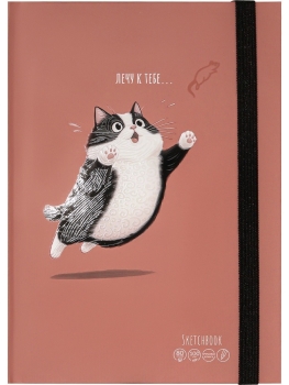 Скетчбук А5 80л Милый пушистый кот тв переплет резинка