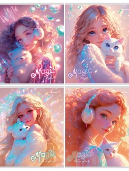 Тетрадь 96л клетка Сияющие девушки и животные