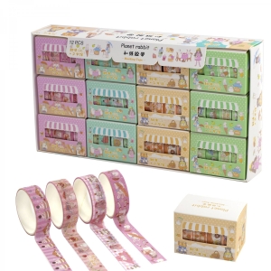 Лента клейкая декоративная 1,5 см х 2м 4шт Зайчик и сладости асcорти