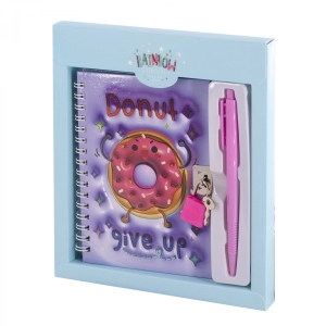 Блокнот подарочный в футляре 17,5 см*19,5 см клетка Сладости гребень замочек голубой