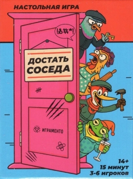 Настольная игра для взрослых и детей "Достать соседа" - это увлекательная и веселая игра, которая затягивает и станет любимым развлечением для друзей и семьи. Она отлично подойдет для семейного отдыха, во время корпоративных праздников или вечеринок. Карточная игра предназначена для компании от 3, 4, 5 и 6 человек. Внутри стильной коробки 56 смешных карт с забавными персонажами.