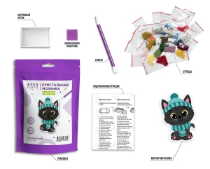 Мозаика алмазная магнит Котик в шапке 7 х 10.5 см