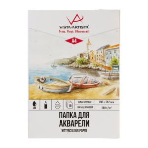Папка для акварели А4 10л 100% целлюлоза 200 г/м2 Лодочки гознак тисненая