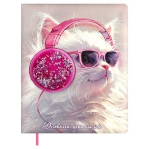 Дневник 1-11 кл 48л кожзам Кот в наушниках